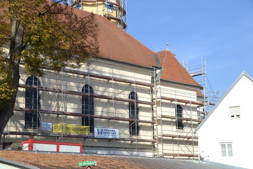 In der zweiten Hälte des September 2016 begannen die Renovierungsarbeiten der Außenfassade und der Kirchturmspitze unserer Pfarrkirche.