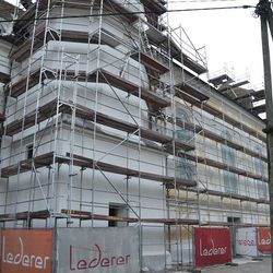 Mitte September 2016 erfolgte der Start der Renovierungsarbeiten. Viele Quadratmeter Gerüst wurde aufgestellt, die Fassade gereinigt, die richtigen Farben ausgesucht und die Fassade neu gestrichen.