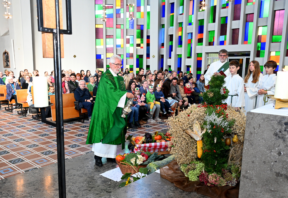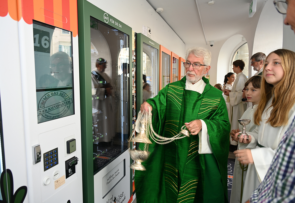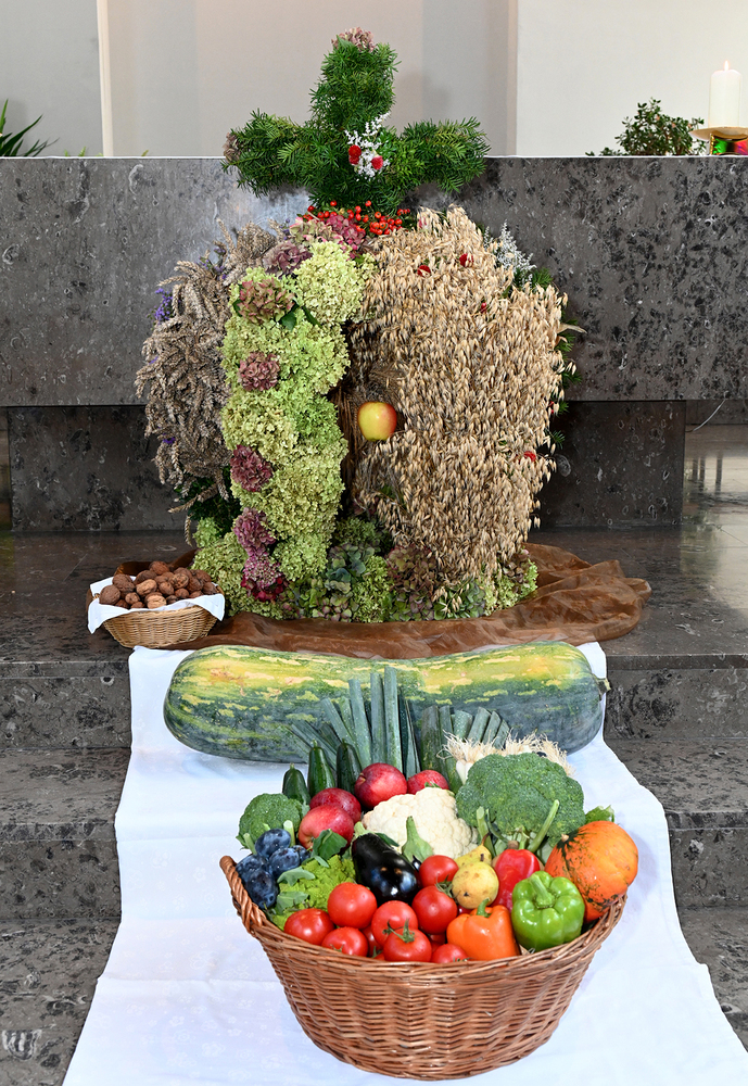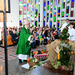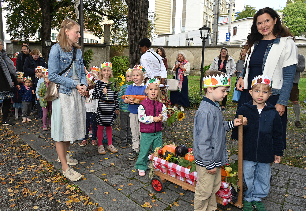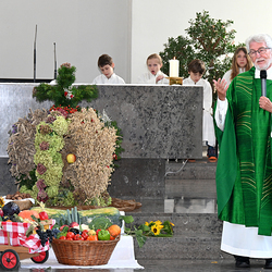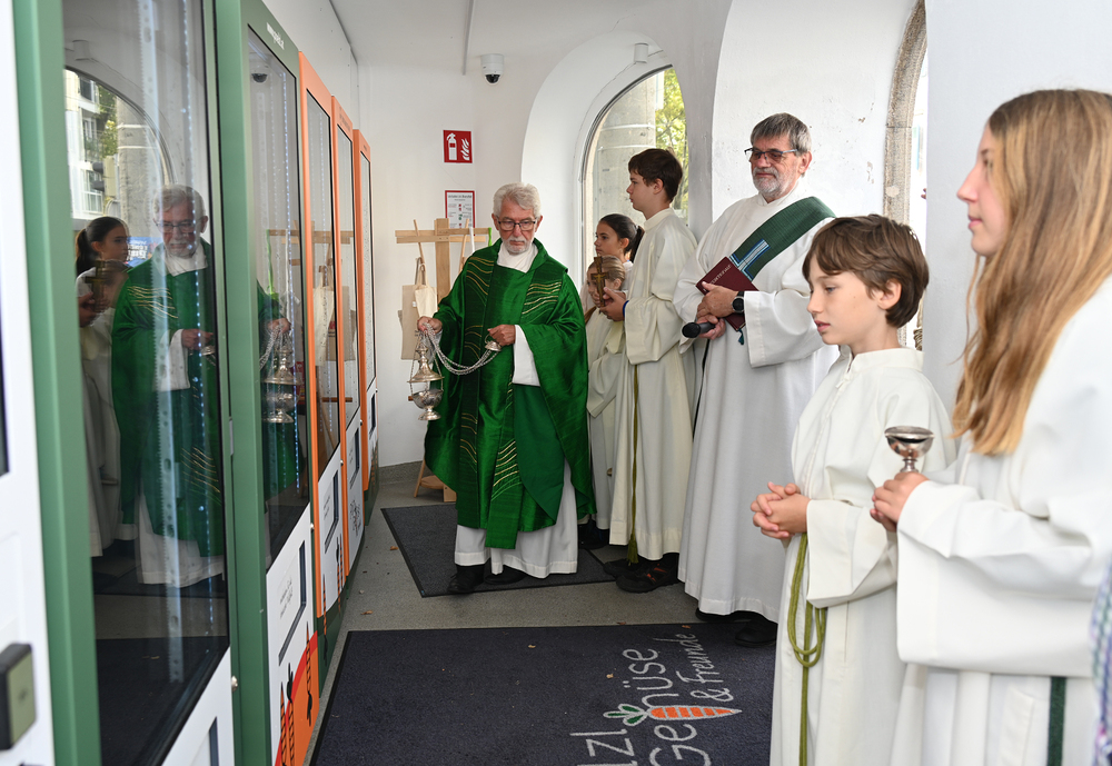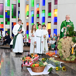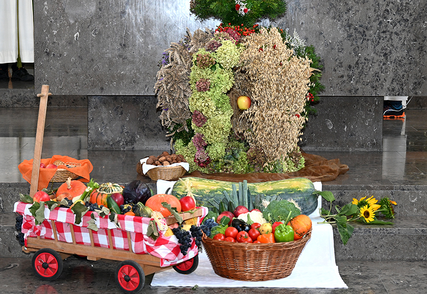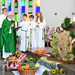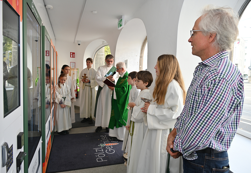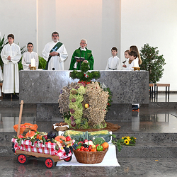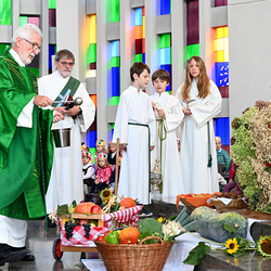 Am 28. September feierte die Pfarre Graz St. Leonhard Erntedank mit anschließender Segnung des Bauernladens "Gemüse Pölzl und Freunde" und Agape am Kirchplatz