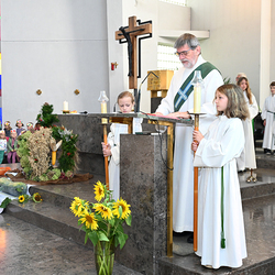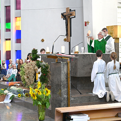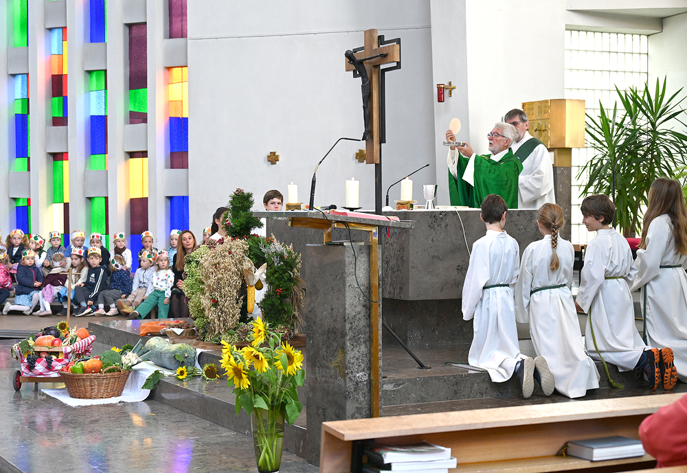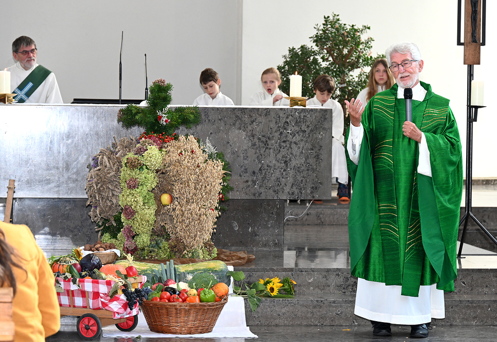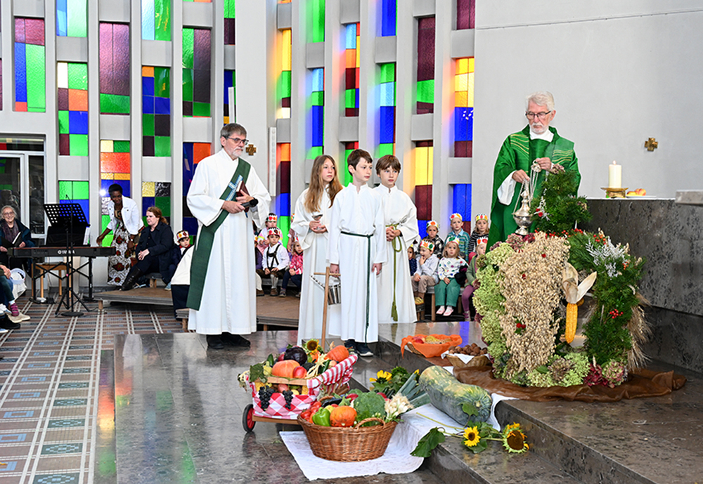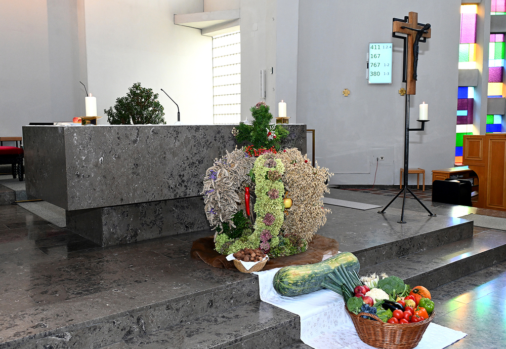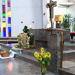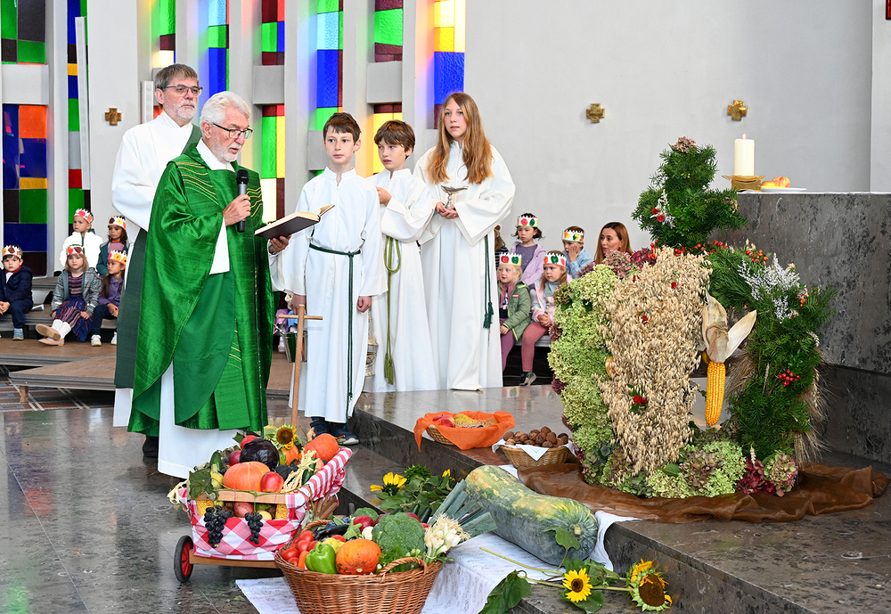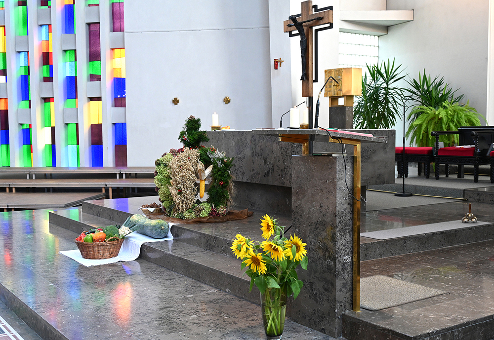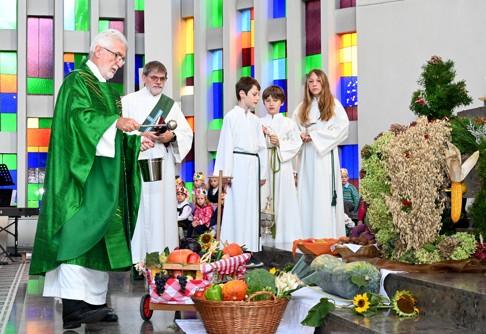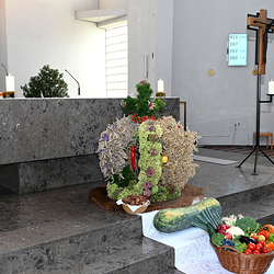 Am 28. September feierte die Pfarre Graz St. Leonhard Erntedank mit anschließender Segnung des Bauernladens "Gemüse Pölzl und Freunde" und Agape am Kirchplatz